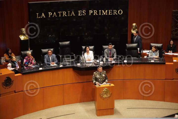 CIUDAD DE MÉXICO, 15NOVIEMBRE2023.- Luis Cresencio, secretario de la Defensa Nacional, durante su intervención en la develación de inscripciones con letras doradas en el Muro de Honor por el "2023, Año del bicentenario del Heroico Colegio Militar" en el muro de honor durante la sesión plenaria de la Cámara de Senadores. FOTO: CUARTOSCURO.COM