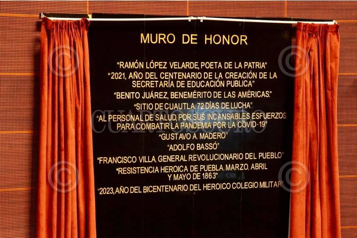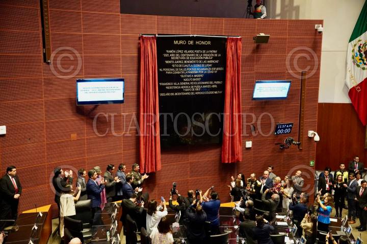 CIUDAD DE MÉXICO, 15NOVIEMBRE2023.- Develación de inscripciones con letras doradas en el Muro de Honor por el "2023, Año del bicentenario del Heroico Colegio Militar" en el muro de honor durante la sesión plenaria de la Cámara de Senadores. FOTO: CUARTOSCURO.COM