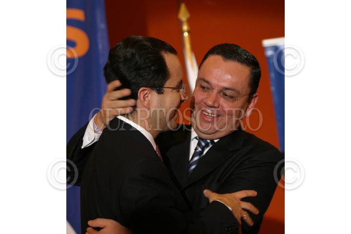 MÉXICO,D,F.,05OCTUBRE2007.- Cesar Nava secretario particular de la presidencia saluda a German Martínez Cazares durante la presentación oficial de Martinez Cazares a la presidencia del partido Acción Nacional. FOTO:SAÚL LÓPEZ/CUARTOSCURO.COM