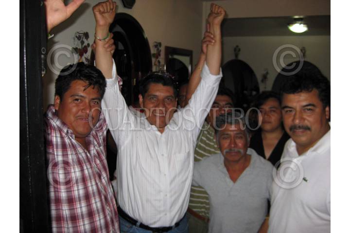 CHILPANCINGO, GUERRERO 06JULIO2009.- Mario Moreno Arcos candidato del PRI a diputado federal por el 07 distrito, levanta las manos en señal de triunfo acompañado de simpatizantes en su domicilio particular el domingo por la noche esto luego de conocer los resultados preeliminares del proceso electoral federal los cuales le eran favorables obteniendo asi una victoria contundente FOTO: OSCAR ALVARADO/CUARTOSCURO.COM