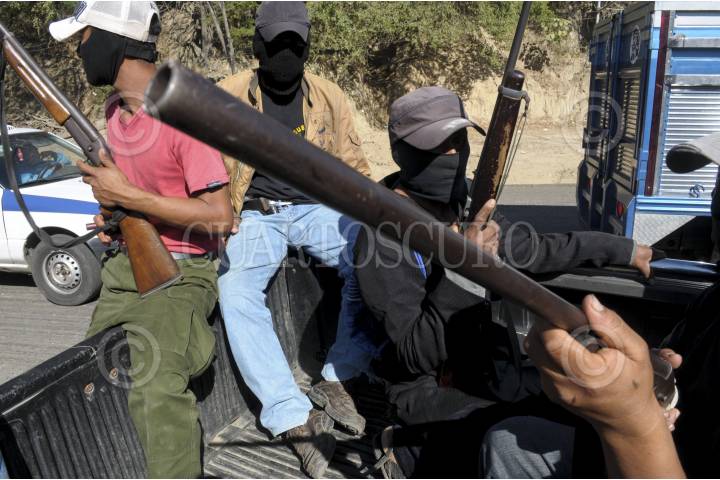 AYUTLA, GUERRERO, 18ENERO2013.- Habitantes del pueblo El Pericón detuvieron a 4 personas vinculadas con el crimen organizado, acusados de cometer ejecuciones, levantones, extorsiones y amenazas a los habitantes de la región. Los habitantes impidieron que el presidente de la Comisión Estatal de Defensa de los Derechos Humanos (Coddehum), Juan Alarcón Hernández, se entrevistara con los 44 presos, para saber en qué condiciones se encuentran. Al llegar al reten de la comunidad, a los trabajadores de la CDHEG y periodistas se les impidió el paso al pueblo en donde están los detenidos por el movimiento de los ciudadanos levantados en armas en contra de la delincuencia organizada desde el 6 de enero. Los presos en los retenes y en los operativos de los civiles armados se encuentran en condiciones que aún no se ha podido establecer debido a que hasta ahora solamente algunos de los familiares de estos han podido verlos, incluso han asegurado que algunos de ellos tienen huellas de torturas. En acuerdo con el Gobierno del Estado, la Comisión de Derechos Humanos y la dirigencia de la Unión de Pueblos y Organizaciones del Estado de Guerrero, hubo el compromiso para que hoy los detenidos fueran visitados y tomar su declaración. Sin embargo los dirigentes del movimiento en este municipio, de última hora, informaron que los habitantes del pueblo y los familiares de las víctimas habían cambiado la decisión y se negaron a que se reuniera con ellos. "No queremos que los defiendan porque son gente que nos están exprimiendo, sobre la pobreza nos están exprimiendo... porque tenemos una vaquita quieren que les estemos cooperando, y a todos los camioneros también les están pidiendo cooperación, toda la gente ya estamos siendo victimas de la delincuencia”, denunciaban mujeres del pueblo. Otra mujer joven comentaba, “hay muchos jóvenes a los que los han matado y no hacen justicia los que están allá, los soldados y todos los que deben hacer justicia, por eso les pedimos a todos ustedes que lleven todo esto, que no quede borrado”, expuso, cuando atrás se escuchaba un coro de protestas no entendibles porque mujeres gritaban al mismo tiempo. FOTO: BERNANDINO HERNÁNDEZ /CUARTOSCURO.COM