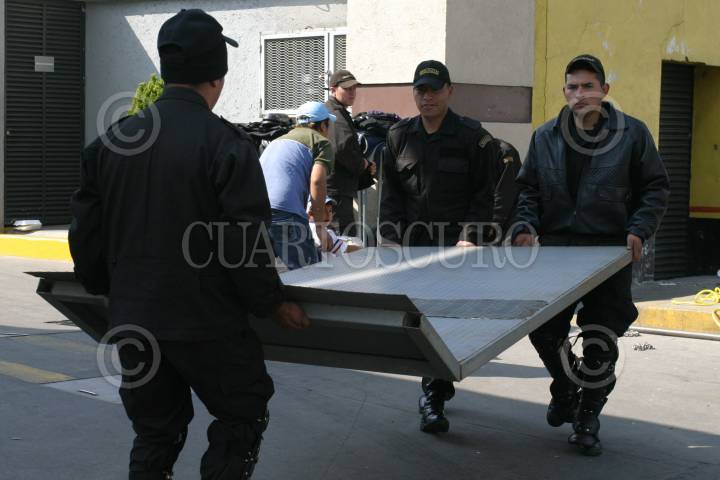 MEXICO,D.F. 01 DE DICIEMBRE 2006 .- Elementos de Seguridad levantando las Vallas afuera al recinto legislativo de San Lázaro en la toma de posesión del presidente Felipe Calderón Hinojosa. FOTO: ROCIO ORTIZ/CUARTOSCURO.COM