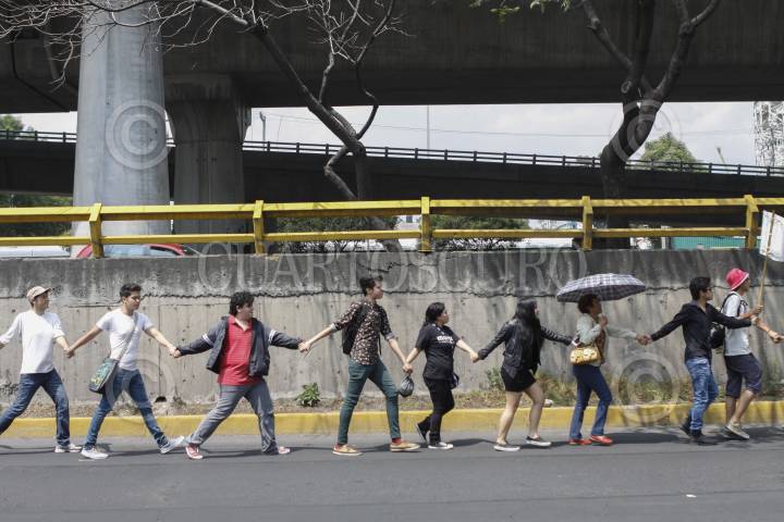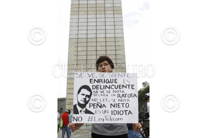 MÉXICO, DF., 26ABRIL2014.- Ciudadanos se manifestaron en la cadena humana para inconformarse contra las leyes secundarias de la Ley de Telecomunicaciones, la cadena se iba a forma de Los Pinos a televisa Chapultepec, pero por falta de organización terminó en un mitin en el Senado de la Republica. FOTO: MOISÉS PABLO /CUARTOSCURO.COM
