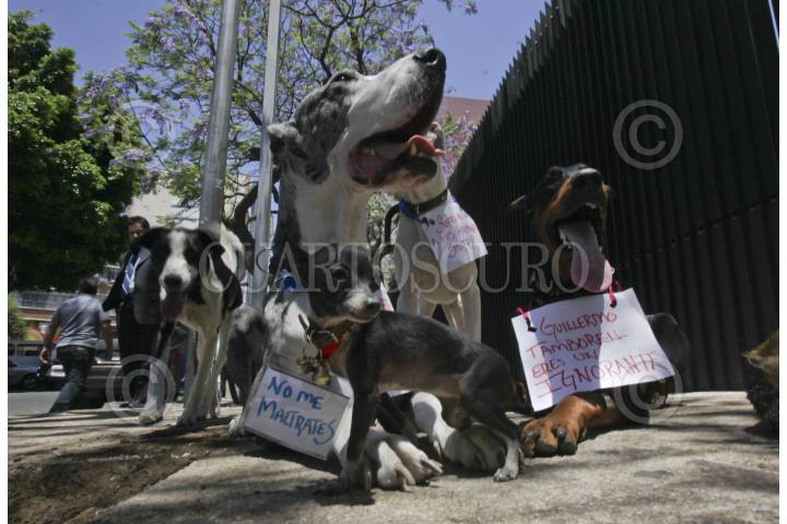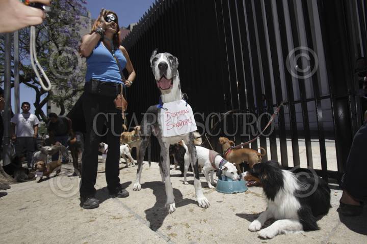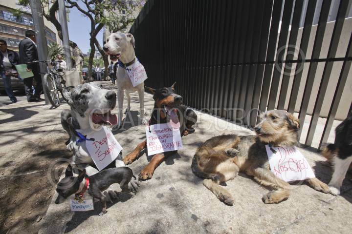 MÉXICO, D.F., 26ABRIL2012.-Protesta de organizaciones caninas afuera del Senado, exigen mejoras a las Reformas a la Ley Animal. FOTO: JUAN PABLO ZAMORA /CUARTOSCURO.COM