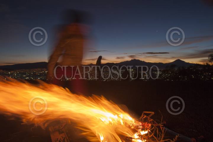 MÉXICO, D.F., 31DICIEMBRE2012.- Esta fué la última mañana del 2012, por lo que varios capitalinos subieron al Cerro de la Estrella en Iztapalapa para despedir el año. Provenientes de colonias aledañas, algunos llegaron desde las 5:00 a.m. para apreciar el espectáculo natural en el ancestral punto geográfico de gran importancia arqueológica, puesto que en sus faldas se han descubierto indicios de antiguos asentamientos humanos cuya antigüedad se remonta hasta la Preclásico mesoamericano. FOTO: JUAN PABLO ZAMORA / CUARTOSCURO.COM