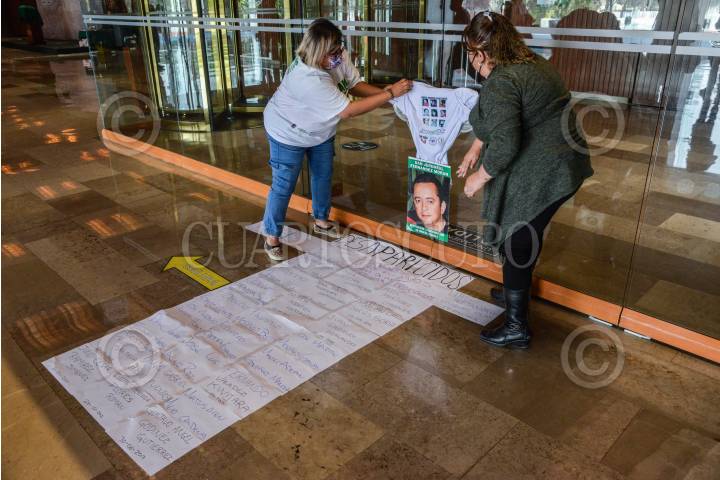 Familiares de personas desaparecidas se manifestaron en el acceso principal al salón de Plenos de la Cámara de Diputados, en contra de la nueva Ley de la Fiscalía General de la República.