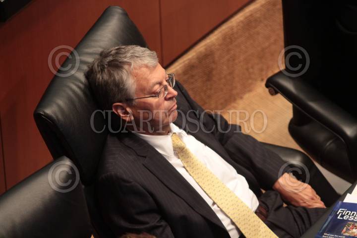 MÉXICO, D.F., 03SEPTIEMBRE2013.-Juan Carlos Romero Hicks, presidente de la Comisión de Educación de la Cámara Alta, mira al teclado al finalizar la votación en lo general de la Ley del Servicio Profesional Docente, que incluye mecanismos para evaluar a los profesores y sanciones para quienes reprueben los exámenes. La iniciativa quedó aprobada por 102 votos a favor y 22 en contra. FOTO: JUAN PABLO ZAMORA /CUARTOSCURO.COM