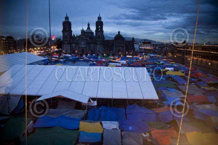MÉXICO, D.F. 04SEPTIEMBRE2013: Decenas de casas de campaña de los maestros de la CNTE continuan abarrotando el zocalo de la ciudad. FOTO: RASHIDE FRÍAS /CUARTOSCURO.COM