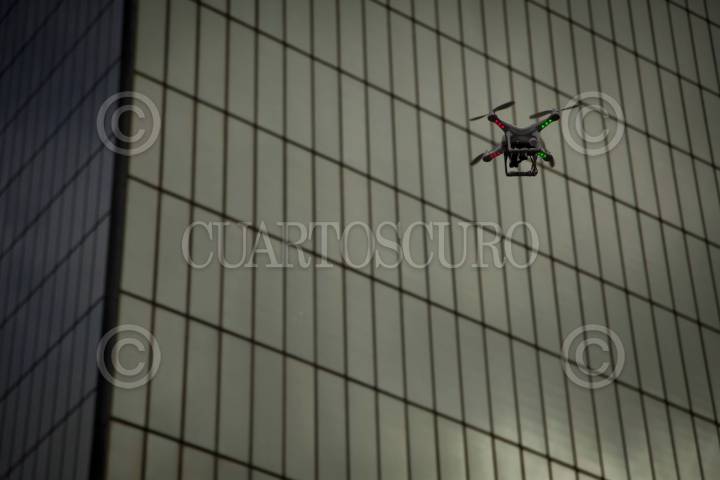 MÉXICO D.F. 04SEPTIEMBRE2013: Una camara conocida como drone sobrevuela la marcha a la altura del auditorio nacional, el pasado 1 de septiembre el perdiodico Reformo utilizo un aparato similar para obtener imágenes de las manifestaciones. FOTO: RASHIDE FRÍAS /CUARTOSCURO.COM