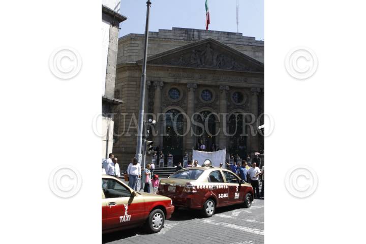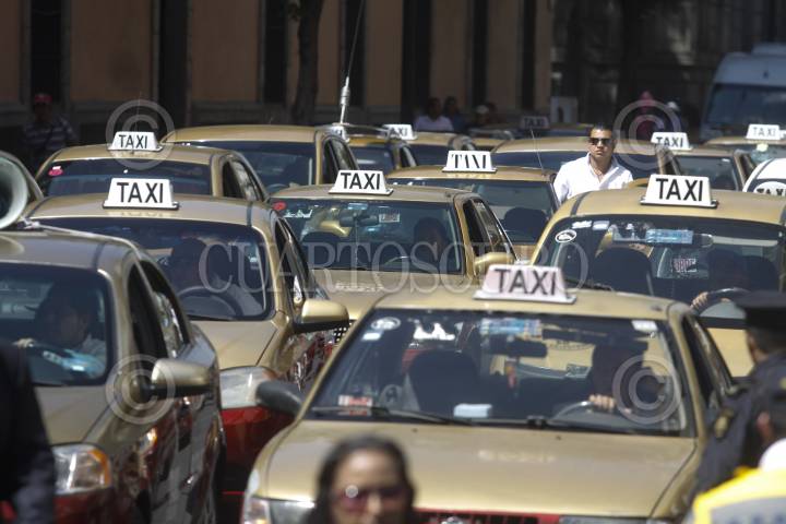 MÉXICO, D.F., 05MARZO2014.- Alrededor de 60 unidades de taxis bloquean las calles aledañas al recinto de la Asamblea Legislativa del Distrito Federal como protesta por la ley de movilidad. Desde el Eje Central, Lázaro Cárdenas, y las calles Donceles y Allende, en el Centro Histórico, los operadores de taxis pertenecientes a la organización Quetzales A.C solicitaron a la presidenta de la Comisión de Movilidad, Claudia Cortés, sean incluidos en la ley de movilidad y se regularicen las cuotas que cada mes deben pagar, así como las tarifas del servicio. Los transportistas piden que la ALDF coadyuve con la Secretaría de Transportes y Vialidad (Setravi) para que se dejen de realizar operativos contra esta organización, que aseguran cumple con todos los reglamentos y tiene sus unidades en regla. FOTO: MOISÉS PABLO /CUARTOSCURO.COM