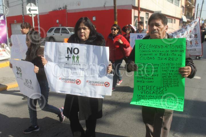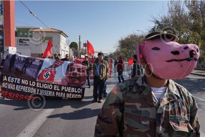 CIUDAD JUÁREZ, CHIHUAHUA, 16DICIEMBRE2017.- Grupos de activistas protestaron a este sábado del Parque Borunda hasta el puente internacional Paso del Norte, en contra de la emisión de la Ley de Seguridad. FOTO: NACHO RUIZ /CUARTOSCURO.COM