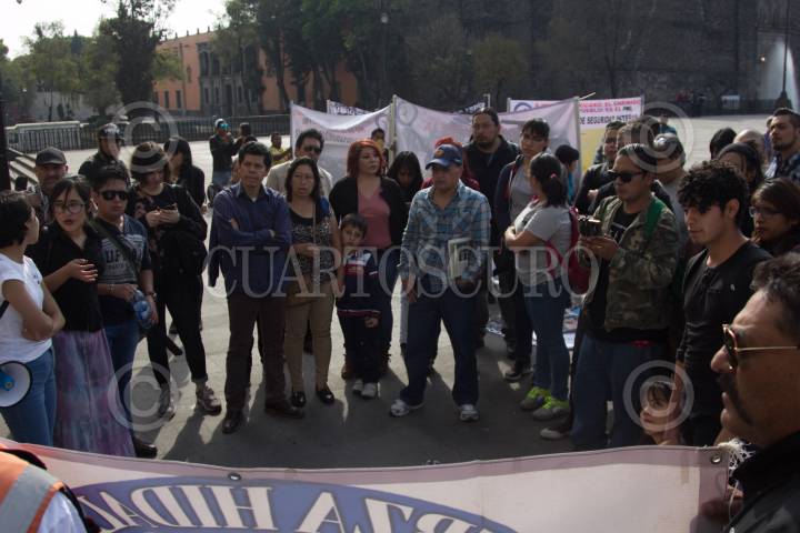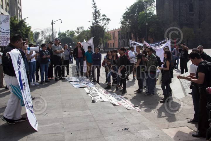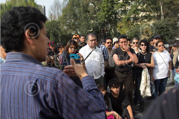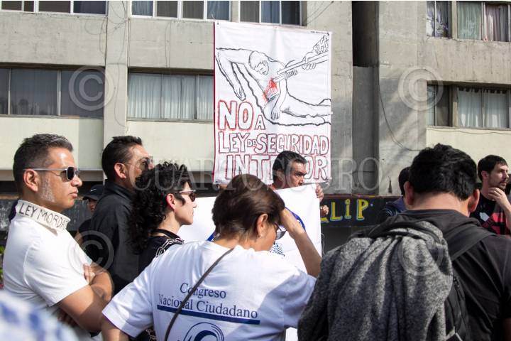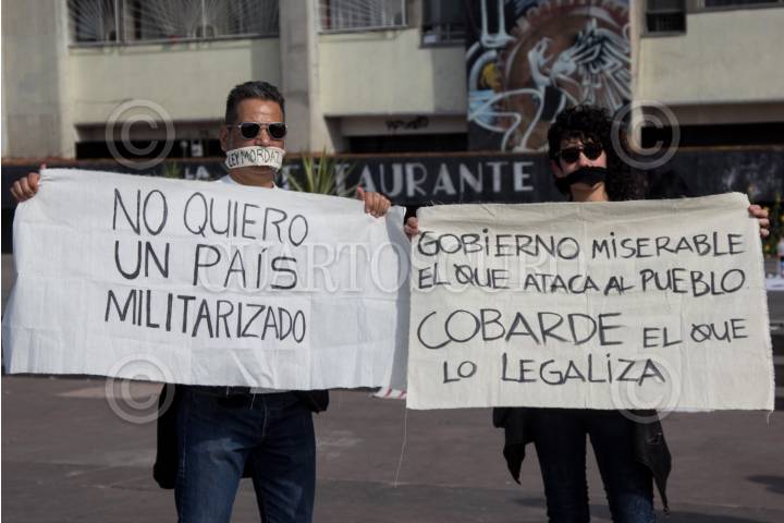 CIUDAD DE MÉXICO, 23DICIEMBRE2017.- La marcha convocada por el colectivo Seguridad Sin Guerra contra la recién aprobada Ley de Seguridad Anterior, que partiría de la Plaza de las Tres Culturas al Monumento a la Revolución, fue cancelada debido a la poca cantidad de asistentes a la cita. En su lugar fue realizada una pequeña asamblea de trabajo donde los asistentes expresaron sus opiniones y propuestas para mejorar la difusión de las actividades. De igual modo, convocaron a un paro nacional para el próximo 2 de enero de 2018 además de una marcha en todo el país, para la segunda semana del mismo mes. FOTO: GALO CAÑAS /CUARTOSCURO.COM
