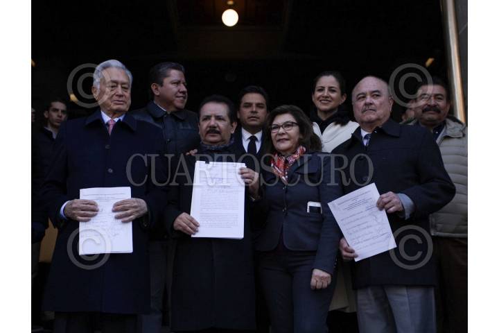 CIUDAD DE MÉXICO, 19ENERO2018.- Los senadores Manuel Bartlett, Saúl Monreal, Luis Sánchez, Angélica de la Peña, Ernesto Ruffo Appel, Zoé Robledo, entre otros, presentaron ante la Suprema Corte de Justicia de la Nación una acción de inconstitucionalidad contra la Ley de Seguridad Interior. FOTO: ADOLFO VLADIMIR /CUARTOSCURO.COM