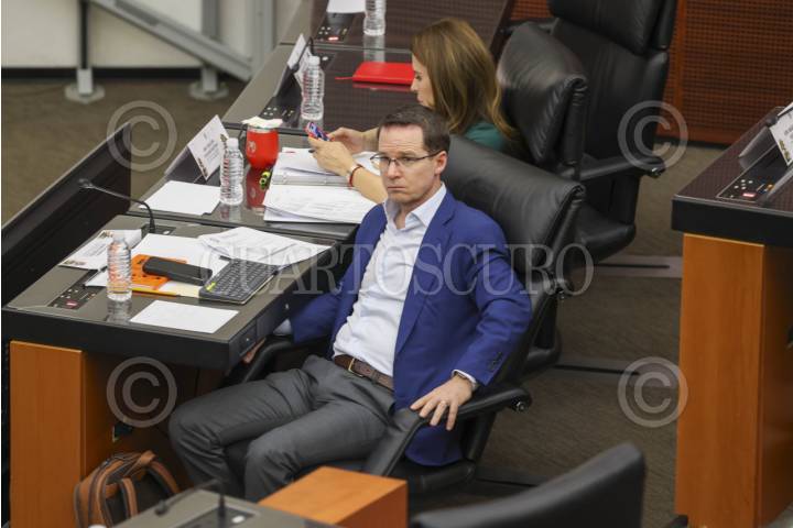 CIUDAD DE MÉXICO, 01JULIO2025.- Integrantes de la bancada del PAN se manifestaron en contra de la aprobación de la nueva Ley de Telecomunicaciones, los parlamentarios acusan que Morena quiere expiar a opositores y a ciudadanos, esto durante el último día del período extraordinario. En la imagen el senador Ricardo Anaya. FOTO: CUARTOSCURO.COM