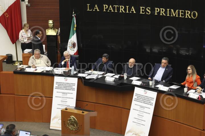 CIUDAD DE MÉXICO, 20MAYO2025.- Alejandro Esquer Verdugo, senador de Morena; Azucena Pimentel Mendoza, Presidenta de la Red de Radiodifusoras y Televisoras Educativas y Culturales de México, y Javier Corral, senador de Morena, durante los conversatorios para el "Análisis y Propuesta del Dictamen por el que se Expide la Ley en Materia de Telecomunicaciones y Radiodifusión y se Abroga la ley Federal de Telecomunicaciones y radiodifusión vigente", que se están llevando a cabo en el Senado de la República. . FOTO: MOISÉS PABLO/CUARTOSCURO.COM