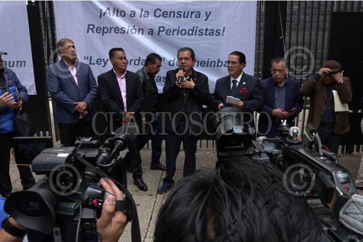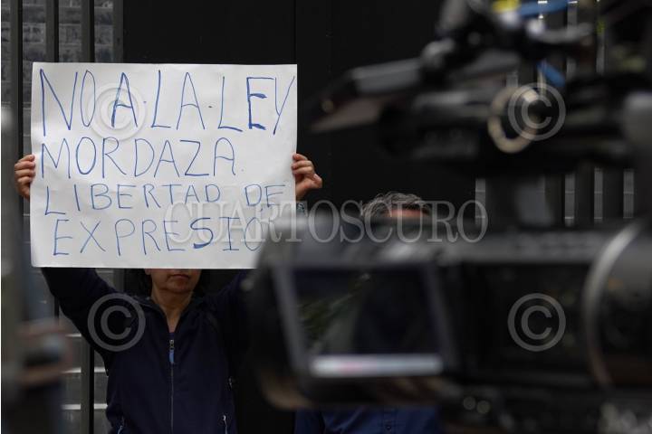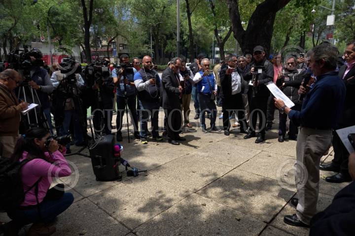 CIUDAD DE MÉXICO 25JUNIO2025.- Un grupo de periodistas se manifestó a las afueras del Senado de la República contra la Ley de Telecomunicaciones, también llamada Ley Censura. FOTO:ROGELIO MORALES /CUARTOSCURO.COM
