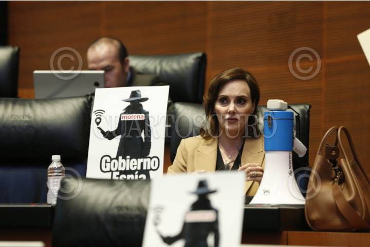 CIUDAD DE MÉXICO, 01JULIO2025.- Integrantes de la bancada del PAN se manifestaron en contra de la aprobación de la nueva Ley de Telecomunicaciones, los parlamentarios acusan que Morena quiere expiar a opositores y a ciudadanos, esto durante el último día del período extraordinario. En la imagen la senadora Lilly Téllez. FOTO: CUARTOSCURO.COM