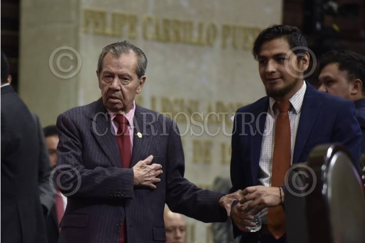 CIUDAD DE MÉXICO, 11ABRIL2019.- La LXIV Legislatura de la Cámara de Diputados lleva a cabo la Sesión Ordinaria en donde se votará el dictamen de la iniciativa de la reforma de Proyecto de Decreto por el que se reforman, adicionan y derogan diversas disposiciones de las Leyes Federal del Trabajo, Orgánica del Poder Judicial de la Federación, Federal de la Defensoría Pública, del Instituto del Fondo Nacional de la Vivienda para los Trabajadores, y del Seguro Social, en materia de justicia laboral, libertad sindical y negociación colectiva. En la imagen, Porfirio Muñoz Ledo, presidente de la mesa directiva en diputados. FOTO: MARIO JASSO /CUARTOSCURO.COM