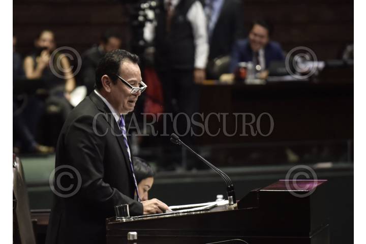CIUDAD DE MÉXICO, 11ABRIL2019.- La LXIV Legislatura de la Cámara de Diputados lleva a cabo la Sesión Ordinaria en donde se votará el dictamen de la iniciativa de la reforma de Proyecto de Decreto por el que se reforman, adicionan y derogan diversas disposiciones de las Leyes Federal del Trabajo, Orgánica del Poder Judicial de la Federación, Federal de la Defensoría Pública, del Instituto del Fondo Nacional de la Vivienda para los Trabajadores, y del Seguro Social, en materia de justicia laboral, libertad sindical y negociación colectiva. En la imagen, Manuel de Jesús Baldenebro, presidente de la Comisión del Trabajo y Previsión Social de la Cámara de Diputados. FOTO: MARIO JASSO /CUARTOSCURO.COM