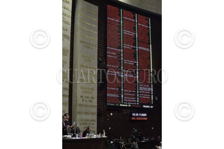 CIUDAD DE MÉXICO, 11ABRIL2019.- Con 417 votos a favor, 29 abstenciones y 1 en contra se aprobó en lo general y en lo particular la iniciativa de la reforma de Proyecto de Decreto por el que se reforman, adicionan y derogan diversas disposiciones de las Leyes Federal del Trabajo, Orgánica del Poder Judicial de la Federación, Federal de la Defensoría Pública, del Instituto del Fondo Nacional de la Vivienda para los Trabajadores, y del Seguro Social, en materia de justicia laboral, libertad sindical y negociación colectiva. FOTO: MARIO JASSO /CUARTOSCURO.COM