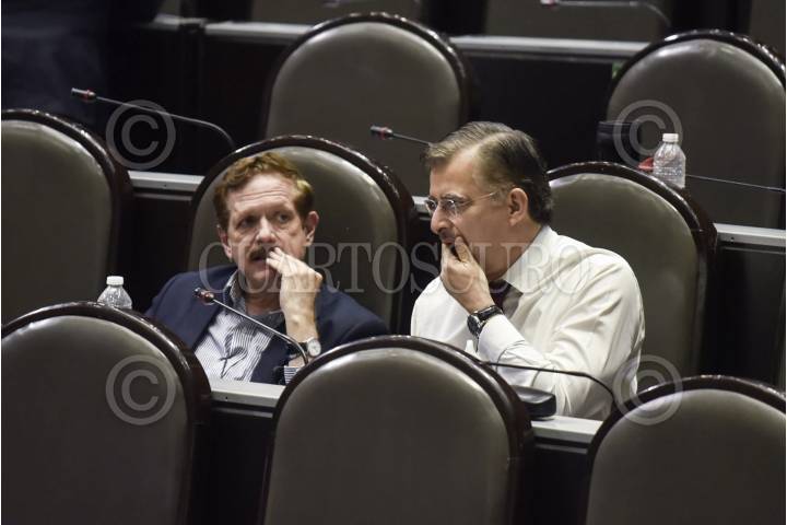 CIUDAD DE MÉXICO, 11ABRIL2019.- Con 417 votos a favor, 29 abstenciones y 1 en contra se aprobó en lo general y en lo particular la iniciativa de la reforma de Proyecto de Decreto por el que se reforman, adicionan y derogan diversas disposiciones de las Leyes Federal del Trabajo, Orgánica del Poder Judicial de la Federación, Federal de la Defensoría Pública, del Instituto del Fondo Nacional de la Vivienda para los Trabajadores, y del Seguro Social, en materia de justicia laboral, libertad sindical y negociación colectiva. En la imagen, Itzcóatl Tonatiuh Bravo Padilla, coordinador de Movimiento Ciudadano, junto a Juan Carlos Romero Hicks coordinador del PAN. FOTO: MARIO JASSO /CUARTOSCURO.COM