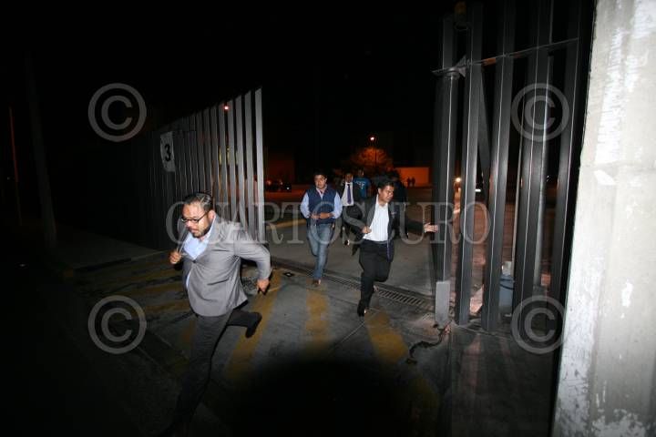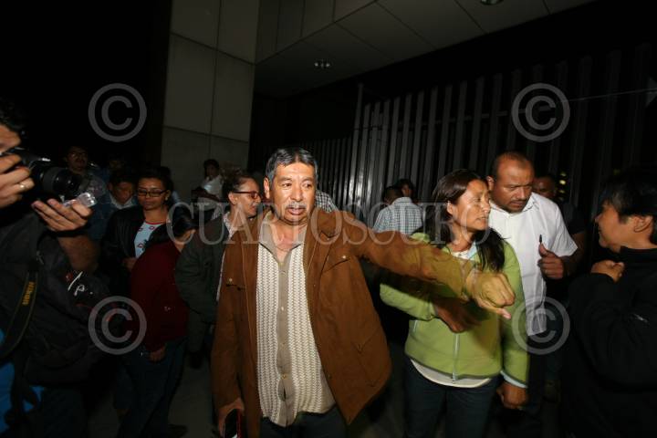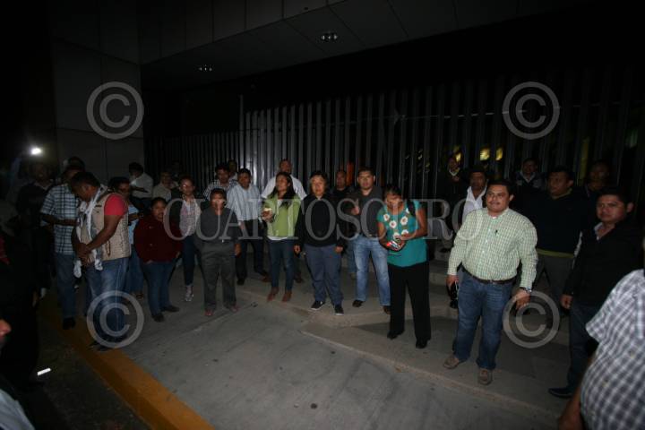 SAN RAYMUNDO JALPAN, OAXACA., 10ABRIL2016.- La noche de este sábado los integrantes de la LXII legislatura local aprobaron la armonización de la Ley Estatal de Educación con la federal. La sesión extraordinaria fue convocada por el presidente de la Mesa Directiva, el priísta Adolfo Toledo Infanzón, sin embargo la convocatoria no fue enviada a todos los diputados acusaron algunos legisladores, incluso el o fue llamado el presidente de la comisión de Educación, el perredista Jesús López. Los diputados que asistieron fueron de las fracciones del PRI y del PAN, apoyados por Movimiento Ciudadano y el PVEM, cabe destacar que el único perredista convocado fue Jaime Bolaños vocero del candidato a la gubernatura, José Antonio Estefan. La aprobación de LEE se llevó a cabo en menos de 10 minutos y a puerta cerrada, no se permitió el acceso a los medios de comunicación, tras esto los diputados y sus ayudantes abandonaron corriendo el lugar. Minutos después arribaron profesores de la sección 22 de la CNTE quienes se encontraban en asamblea estatal. FOTO: ARTURO PÉREZ ALFONSO /CUARTOSCURO.COM