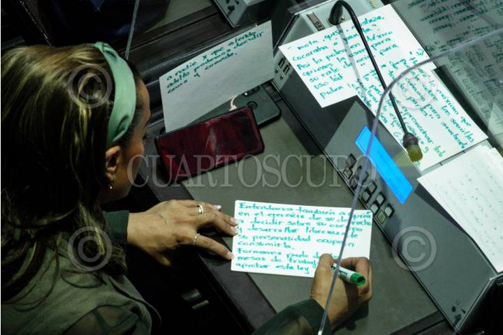 Claudia Angélica Domínguez, diputada del PT, prepara su discurso durante la sesión ordinaria de la Cámara de Diputados en donde se discute la Ley Federal para la Regulación del Cannabis.