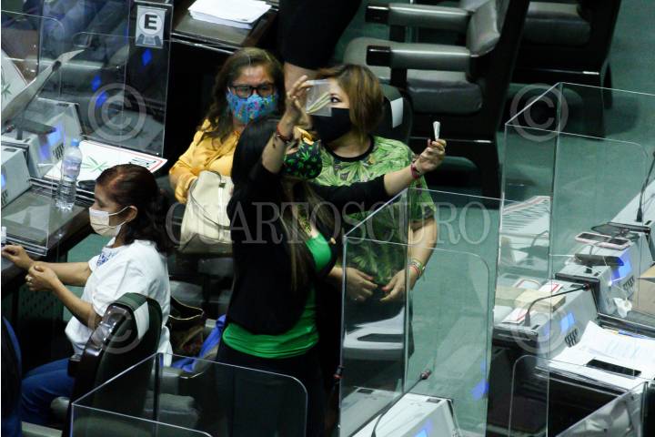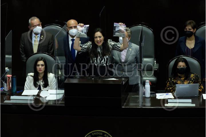 Martha Tagle, diputada de Movimiento e integrantes del mismo grupo parlamentario, durante la sesión ordinaria de la Cámara de Diputados en donde se discute la Ley Federal para la Regulación del Cannabis.