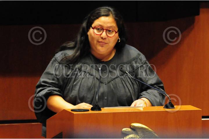 Citlalli Hernández duranta conferencia de prensa para anunciar que se aprobará la Ley Minera.