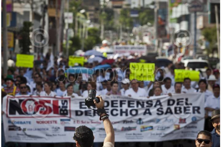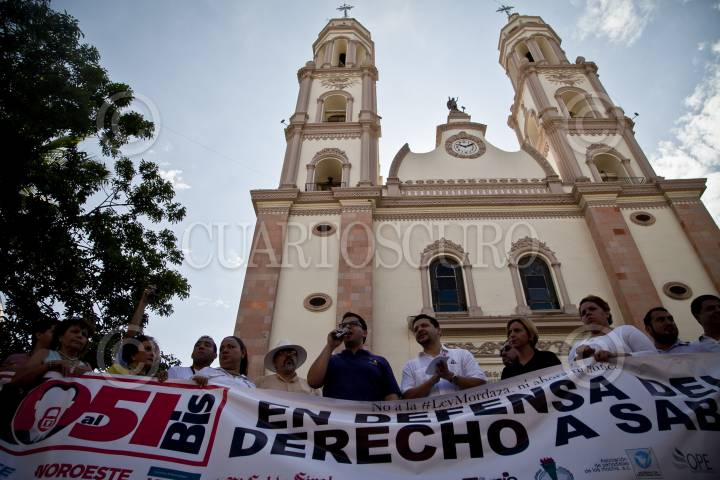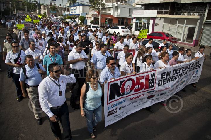 CULIACÁN,SINALOA, 07AGOSTO2014.-Periodistas de distintos medios de comunicación del estado de Sinaloa se reunieron para realizar una marcha en contra de la ¨Ley Mordaza¨, para exigir la libertad de expresión y se derogue el articulo 51 Bis, al mismo tiempo compañeros de otros estados se reunieron para apoyar la marcha. FOTO: RASHIDE FRIAS /CUARTOSCURO.COM
