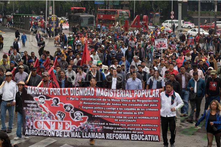 CIUDAD DE MÉXICO, 07JUNIO2018.- Maestros de la CNTE, se manifestaron en Reforma y Bucareli como parte de las actividades del plantón indefinido hasta que se cree una mesa de diálogo y la prorrogación de la Reforma Educativa. Los Trabajadores de la educación mantienen el campamento colectivo en Bucareli y a las afueras de las instalaciones de la secretaria de Gobierno. FOTO: ANDREA MURCIA /CUARTOSCURO.COM