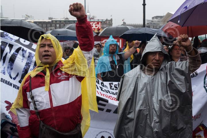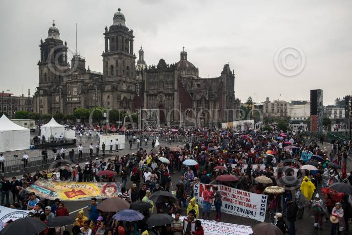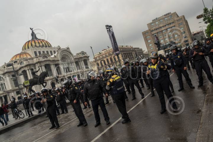 CIUDAD DE MÉXICO, 12JUNIO2018.- Maestros de la CNTE se manifestaron y marcharon por Reforma; miembros de la policía les impidieron el paso frente al llegar al Palacio de Bellas Artes, luego de 30 min los dejaron continuar, logrando pisar después de 4 años el Zócalo capitalino. Exigen que se realice una mesa de diálogo hacía la prorrogación de la Reforma Educativa. FOTO: ANDREA MURCIA /CUARTOSCURO.COM