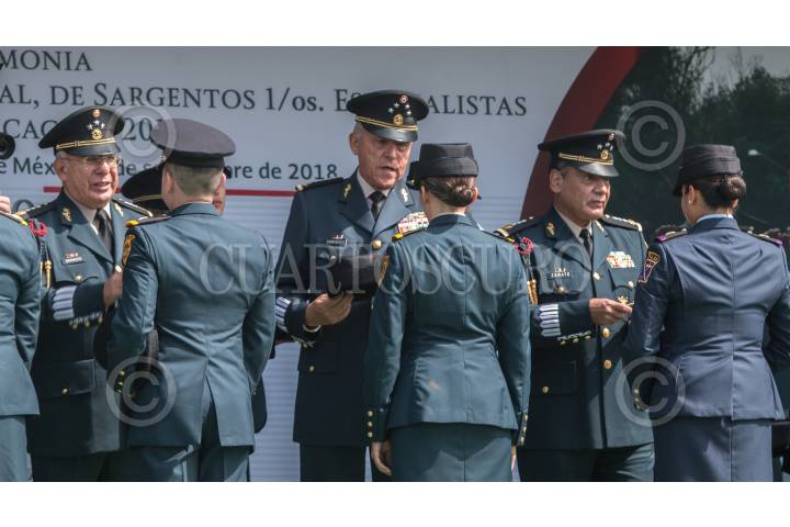 CIUDAD DE MÉXICO, 01SEPTIEMBRE2018.- El General Salvador Cienfuegos Zepeda, Secretario de la Defensa Nacional, acompañado por funcionarios de la propia dependencia, presidió la “Ceremonia de Ascensos de la Promoción Especial, de Sargentos Primeros Especialistas, Reclasificación y Veteranización 2018”, la cual se llevó a cabo en la explanada Damián Carmona del Campo Militar. FOTO: ANDREA MURCIA /CUARTOSCURO.COM