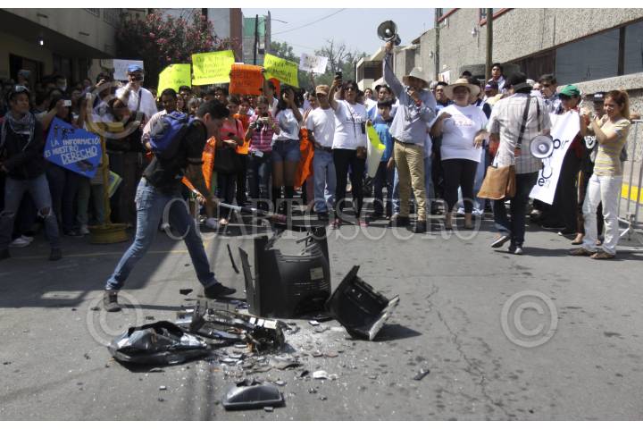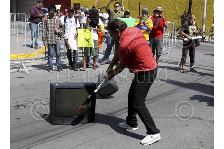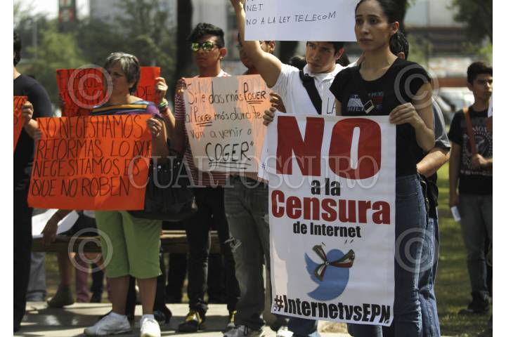 MONTERREY, NUEVO LEÓN, 26ABRIL2014.- Decenas de personas que se oponen a la Ley Telecom se congregaron en la Alameda ubicada en el centro de la ciudad. Posteriormente se trasladaron a las instalaciones de Televisa para exigir “Internet libre”. FOTO: GABRIELA PÉREZ MONTIEL / CUARTOSCURO.COM
