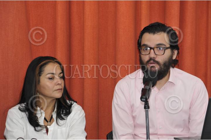 MÉXICO, D.F., 13OCTUBRE2014.- Aleida Calleja, de la organización Observa.com, y Luis Fernando García, abogado de la Red en Defensa de los Derechos Digitales, durante una conferencia de prensa en el Centro Nacional de Comunicación Social (Cencos) para hablar sobre las demandas de amparos que han realizado varias radios comunitarias, indígenas y productores independientes en contra de la Ley Federal de Telecomunicaciones y Radiodifusión ya que manifiestan es discriminatoria y tiene muchas restricciones para realizar programas con lenguas indígenas. FOTO: DIEGO SIMÓN SÁNCHEZ /CUARTOSCURO.COM