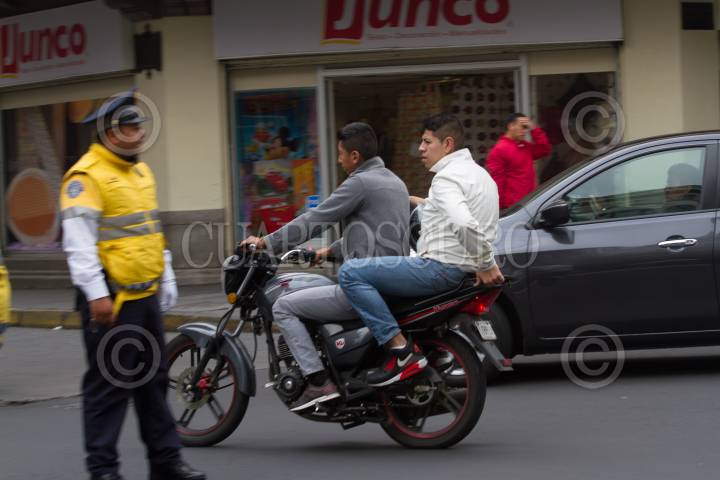 MÉXICO, D.F., 29MAYO2015.- Un par de jóvenes que viajan en motocicleta sin casco, lo que viola las leyes de transito, pasan frente a un policía de transito en avenida 20 de noviembre, sin que este los infraccione o llame la atención. FOTO: MOISÉS PABLO /CUARTOSCURO.COM