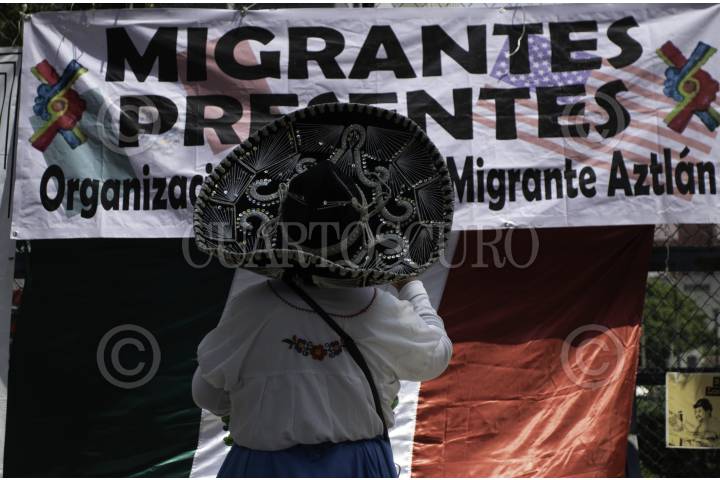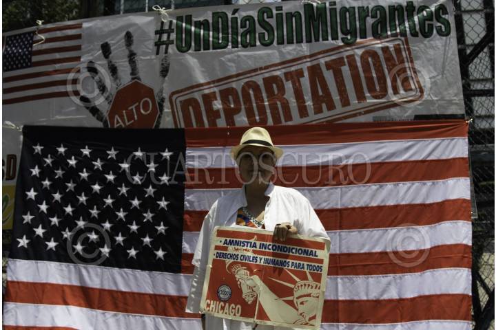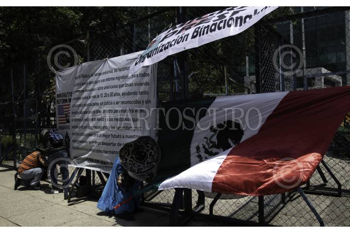 Encabezada por María García fundadora d ella Organización Binacional Migrante Aztlán miembros del colectivo protestaron de manera pacifica frente a la embajada de EUA ubicada en Av. Reforma por el inicio del partido Republicano y la aprobación de la ley CB 1718 aprobada por el gobierno de Florida.