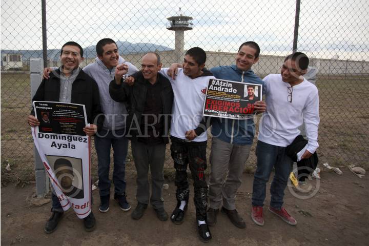 XALAPA, VERACRUZ 29NOVIEMBRE14.- Después de dar el anuncio y celebrar la liberación de los once jóvenes en el juzgado Décimo Séptimo por parte del ciudadano chileno Alberto Maxwell, esta tarde cerca de las 16 horas fueron puestos en libertad del penal de Villa Aldama, siete de los ocho jóvenes detenidos el 20 de noviembre en la Ciudad de México, quienes fueron recibidos por familiares y amigos que se trasladaron desde el pasado martes 25 de noviembre del Distrito Federal al juzgado 17 con sede en la ciudad de Xalapa. El estudiante chileno Lawrence Maxwell, fue trasladado a las oficinas del Instituto Nacional de Migración en el puerto de Veracruz donde quedará en libertad en las próximas horas mientras que los siete jóvenes afirmaron que esta acción no los detendrá en la lucha por un mejor país y anunciaron que participarán en la marcha del próximo 1 de diciembre a dos años de la toma de protestas del Presidente Enrique Peña Nieto. FOTO: RUBÉN ESPINOSA /CUARTOSCURO.COM
