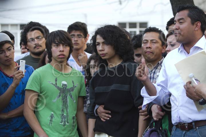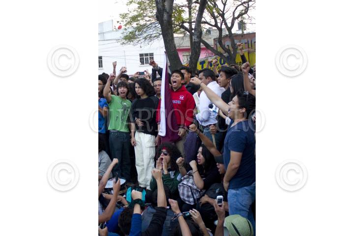 MÉXICO, D.F., 04DICIEMBRE2014.- Unos 500 estudiantes partieron al mediodía de la Plaza Roja de Zacatenco hacia el Reclusorio Norte, donde se encontraban consignados Ariel Flores Pérez, Óscar Espinoza Trigueros y Demián Reyes. Sin embargo, unos cuarenta minutos antes de su arribo al Reclusorio, los indiciados fueron puestos en libertad y trasladados a la casa de la familia de Demián Reyes. A su vez, Miguel Méndez, abogado de la Liga 1 de Diciembre, dijo a los presentes que los muchachos fueron liberados por la presión ejercida por la movilización y los conminó a no dejar de presionar. Unas horas después, regresaron a agradecer a los familiares y estudiantes que protestaron. FOTO: SAÚL LÓPEZ /CUARTOSCURO.COM