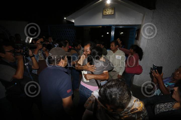 ACAPULCO, GUERRERO, 08JUNIO2019.- Ayer, por falta de pruebas, 12 de los 16 integrantes del Consejo de Ejidos y Comunidades Opositores a la Presa La Parota (CECOP) fueron liberados luego de más de un año de estar en la cárcel de Acapulco, acusados de homicidio calificado. Entre los liberados se encuentra el líder de la organización, Marco Antonio Suástegui Muñoz, quién ha sido encarcelado por razones políticas cuatro veces. Los activistas de origen indígena fueron detenidos y encarcelados el 7 de enero de 2018, desde entonces defensores de derechos humanos y organizaciones sociales protestaron con la consigna "Ni presos ni presa" para exigir su liberación. FOTO: CARLOS ALBERTO CARBAJAL /CUARTOSCURO.COM