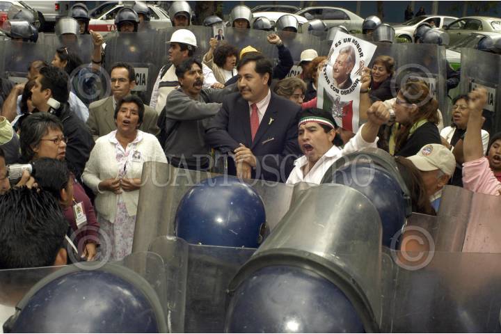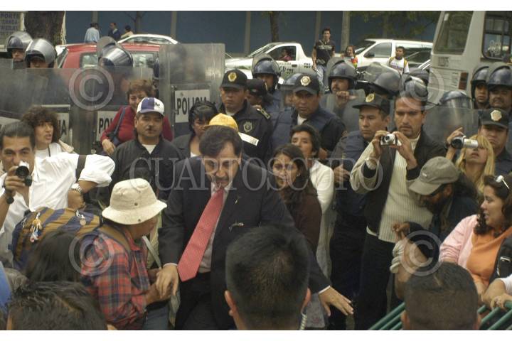MÈXICO,D,F.,10OCTUBRE2007.- Gerardo Fernández Noroña Vocero del Partido de la Revolución democrática acudieron al un hotel polanco a manifestarse por la presencia de Felipe Calderon presidente de los Estados Unidos Mexicanos se encontraba en un evento FOTO:IVAN MENDEZ/CUARTOSCURO.COM