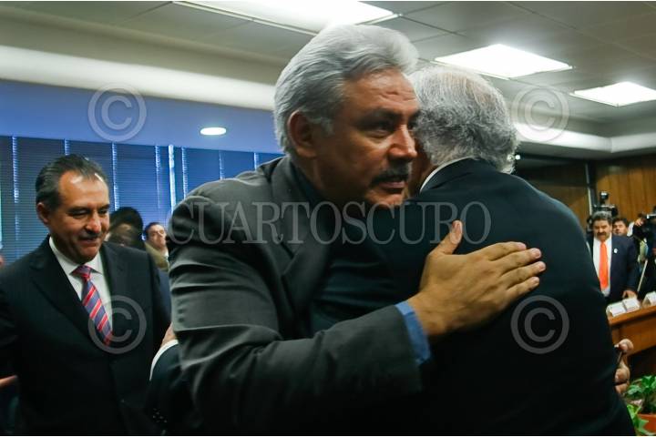 MÉXICO D.F. 23DICIEMBRE2008,- El titular de la SAGARPA Alberto Cardenas junto con 13 gobernadores firmaron este mediodía un convenio para liberar recursos para el campo durante los primeros 6 meses del año. En la imagen Alberto Cardenas se despide del gobernador de San Luis, Marcelo de los Santos. FOTO: SAÚL LÓPEZ/CUARTOSCURO.COM