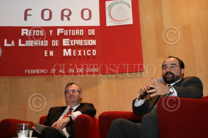 MÉXICO D.F. 28FEBRERO2008.-Emilio Álvarez Icaza, presidente de la Comisión de Derechos Humanos del D.F. acudió a la Cámara de Diputados al Foro "Retos y Futuro de La liberta de Expresión en México".En la imagen es acompañado Enrique Gómez Orozco, Director General de Periódicos AM de Guanajuato. FOTO: GUILLERMO PEREA/CUARTOSCURO.COM