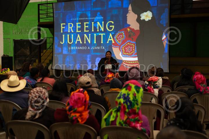 SAN MATEO IXTATÁN, GUATEMALA, 24DICIEMBRE2024.- Juana Alonzo, una mujer indígena Chuj, originaria del cantón Chakchak´en, salió de su casa en octubre del 2014, con rumbo a los Estados Unidos. En Guatemala un gran porcentaje de la sociedad migran a ese país en busca de mejores oportunidades, huyendo de la pobreza, violencia y corrupción que imperan en el país. Un mes después Juanita se encontraba cruzando territorio mexicano. En Tamaulipas, al norte del país mexicano, unos sujetos la separaron del grupo con el que viajó y la encerraron en una casa junto con otra mujer que viajaba con su hija. Días después, un grupo de cinco agentes del ministerio público la detuvieron y la acusaron de secuestro. El 12 de noviembre de ese mismo año el Ministerio Público determinó ejercer acción penal contra Juanita e ingresó al Centro de Ejecución de Sanciones de Reynosa, donde permaneció privada de la libertad por siete años y seis meses. La organización de Promotores de la Liberación Migrante, integrada por jóvenes traductores de lenguas originarias mayas de Guatemala, así como familiares, amigos, vecinos y pobladores de su comunidad, iniciaron una campaña de información y lucha por su liberación, gracias a la cual hoy se encuentra en libertad y de regreso en su comunidad. El camino por su liberación fue documentado por el director Sebastián Lasaosa, dicha documentación resultó en una pieza cinematográfica, que fue presentada en la comunidad para que la población fuera testigo del camino que se tomó para lograr que Juanita hoy en día esté en libertad. FOTO: ISABEL MATEOS /CUARTOSCURO.COM