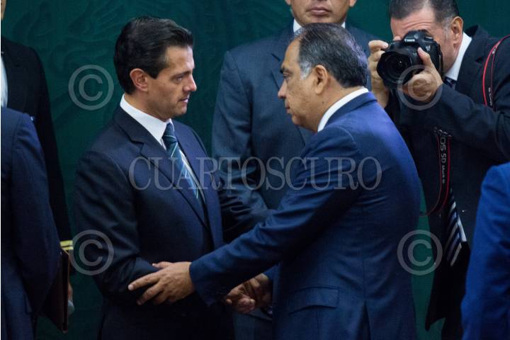 CIUDA DE MÉXICO, 17MAYO2017.- El presidente Enrique Peña Nieto, y Héctor Astudillo Flores, gobernador de Guerrero, al término de la reunión convocada por el presidente Enrique Peña Nieto en torno a las acciones para la protección a periodistas y la libertad de expresión. FOTO: GALO CAÑAS /CUARTOSCURO.COM