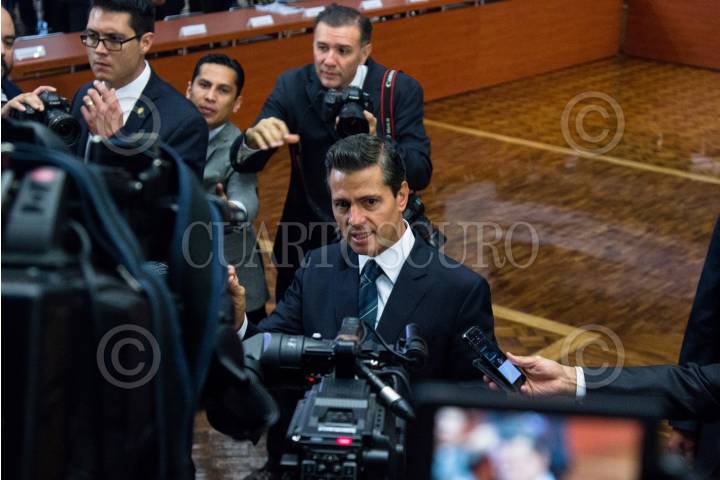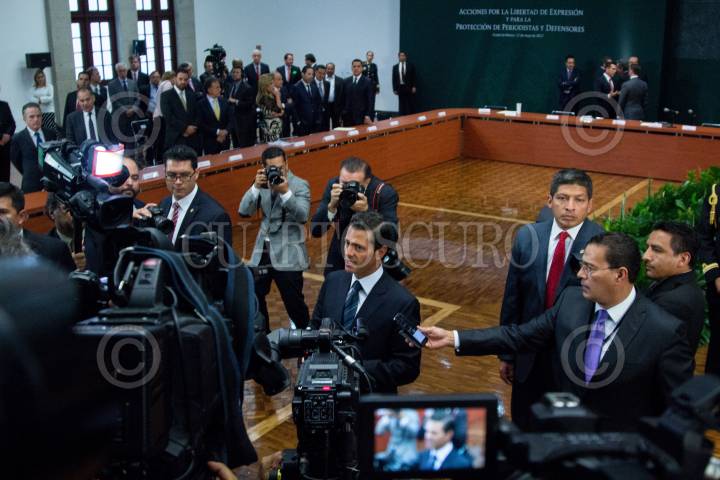 CIUDA DE MÉXICO, 17MAYO2017.- El presidente Enrique Peña Nieto se acerco a los medios de comunicación asistentes a la reunión convocada por él en torno a la protección a periodistas y la libertad de expresión. FOTO: GALO CAÑAS /CUARTOSCURO.COM