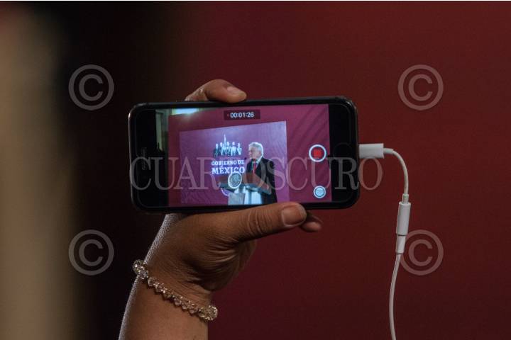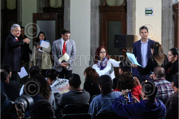 CIUDAD DE MÉXICO, 02JULIO2019.- El presidente de la República, Andrés Manuel López Obrador, durante la conferencia matutina diaria en el Palacio Nacional. Al finalizar reportera le entrego unos documentos refiriéndose a los despidos de la agencia de noticias del estado. FOTO: ANDREA MURCIA /CUARTOSCURO.COM