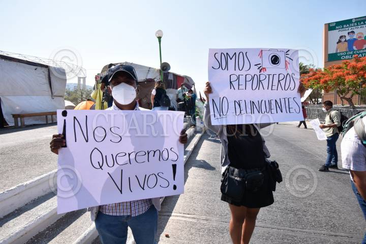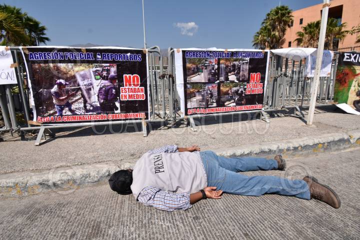 Periodistas de Chilpancingo se manifestaron frente al Palacio de Gobierno, en el marco del Día Internacional de la Libertad de Prensa, ahí acusaron de varios hechos de intimidación durante su desempeño por parte de elementos de la Secretaría de Seguridad Pública, que encabeza David Portillo Menchaca.