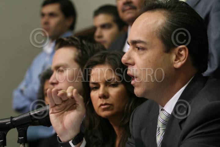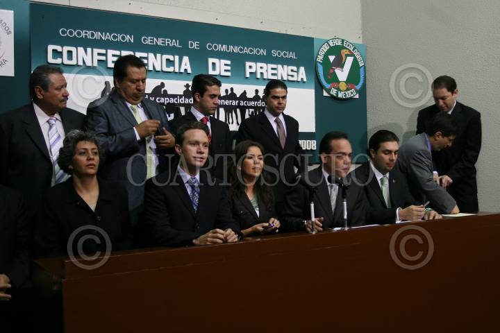 MÉXICO D.F. 17ABRIL2008.-Diputados y senadores del Partido Verde Ecologista acudieron a la Cámara de diputados para dar una conferencia a los medios donde dieron a conocer su postura de rechazó a las limitantes a la libertada de expresión y la desigualdad en el Derecho de Réplica. FOTO: GUILLERMO PEREA /CUARTOSCURO.COM