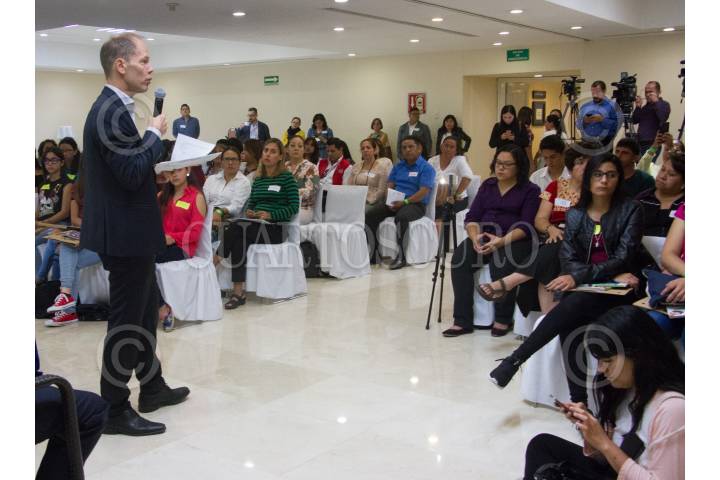 CIUDAD DE MÉXICO, 23JULIO2018.- Cristian Skoog, representante de la UNICEF en México, durante su participación del Primer Encuentro de la Red Nacional de Niñas Niños y Adolescentes, libres de violencia. La reunión consiste en talleres, charlas y convivencia, entre los jovenes asistentes. FOTO: VICTORIA VALTIERRA /CUARTOSCURO.COM